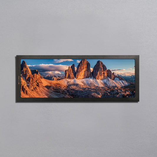 SIME PHOTO ART propone una prima serie di fotografie che catturano la maestosità delle vette delle Dolomiti, il calore dei tramonti e la magia stagionale. Esalta e trasforma gli spazi con eleganza portando il loro incanto direttamente a casa tua.