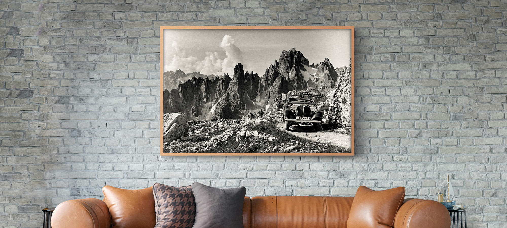 C'è una quiete serena nell'atmosfera, invitando lo spettatore a riflettere sulla bellezza della natura circostante: le montagne, picchi taglienti e creste scoscese. La presenza dell'auto suggerisce un viaggio attraverso questi paesaggi mozzafiato.