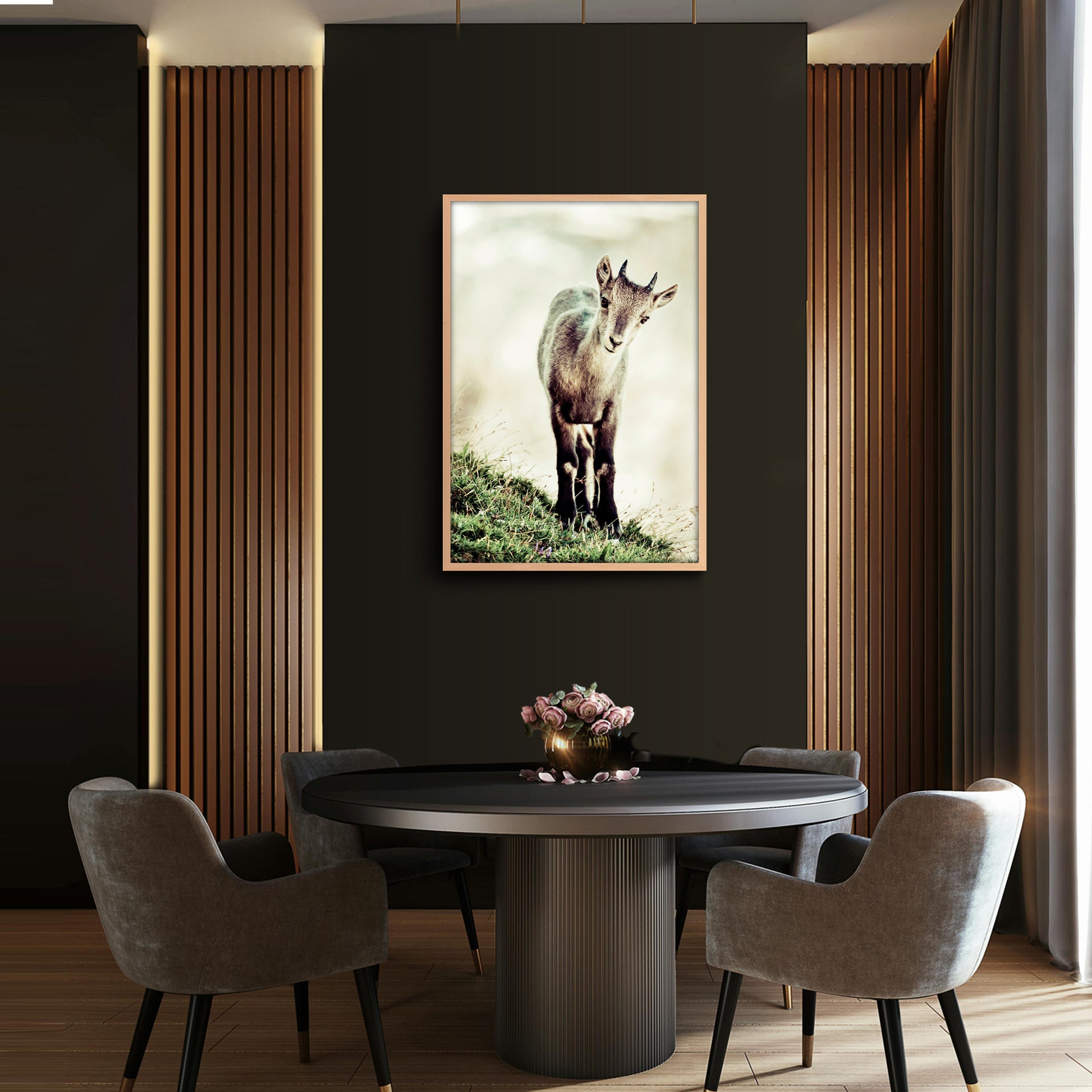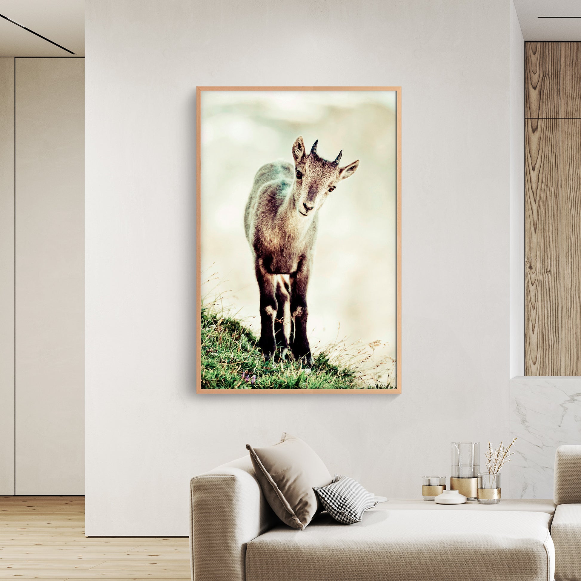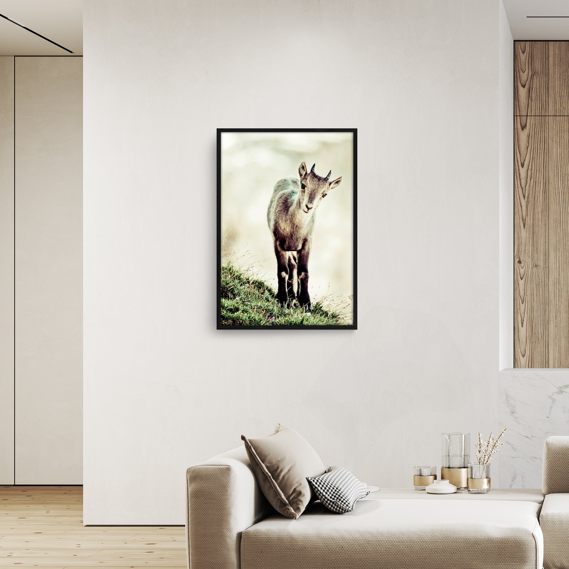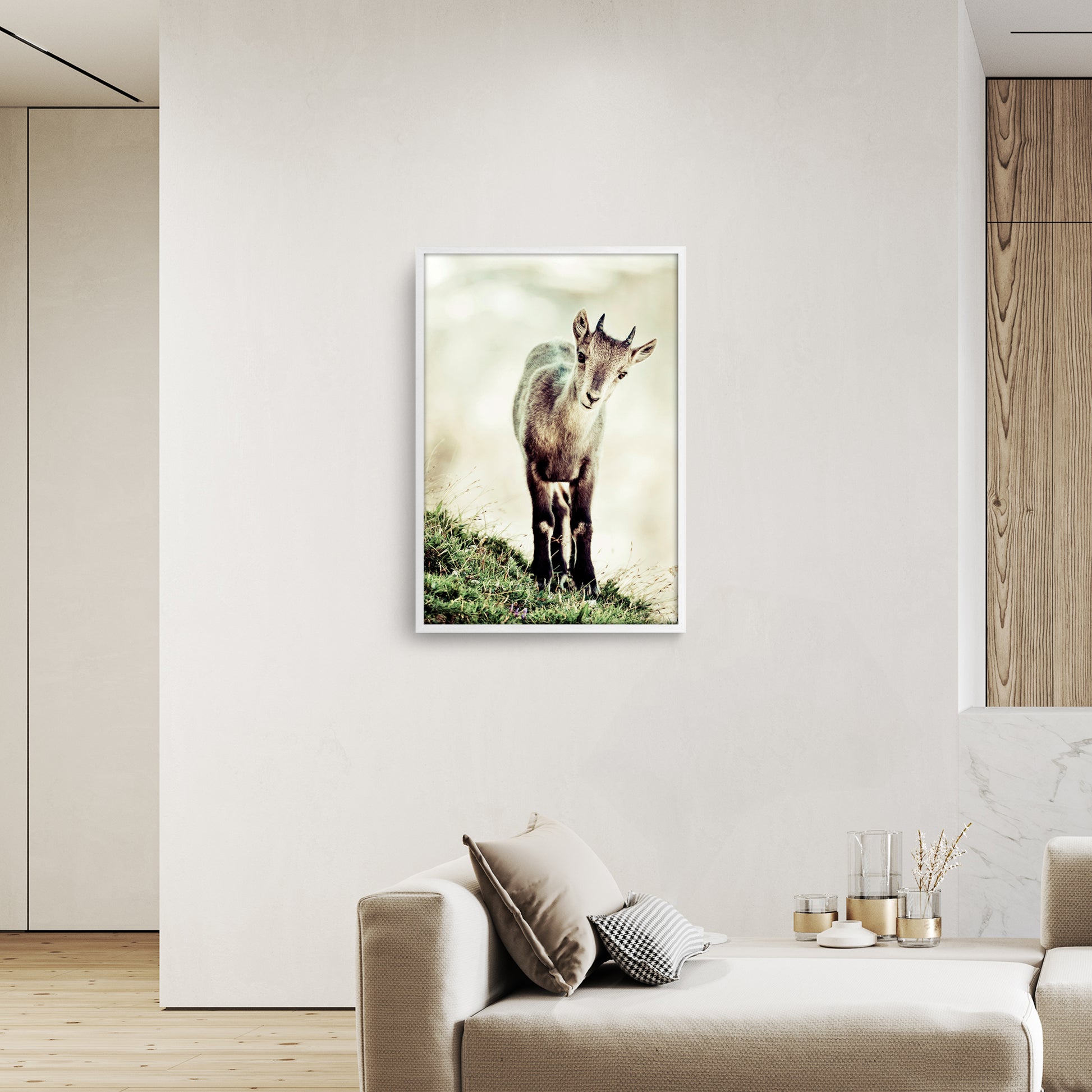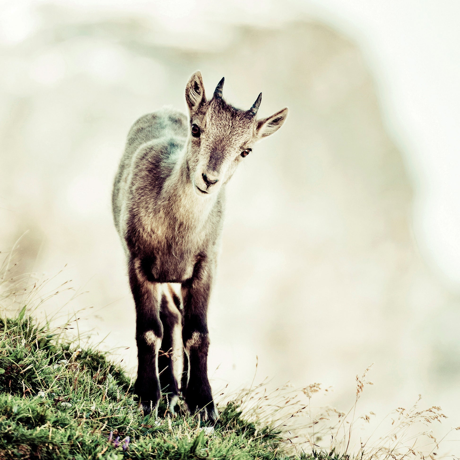 Quest'opera è disponibile su carta fotografica Fine Art o su Tela Tiziano Canvas. Gli inchiostri utilizzati sono di altissima qualità e a lunga durata, garantendo una resa cromatica brillante e duratura nel tempo. Questa immagine mostra un giovane camoscio che si trova su un prato erboso. Lo sguardo attento e curioso del camoscio rivela una natura gioiosa e un'anima vibrante di vita. La luce delicata che avvolge l'immagine conferisce un'atmosfera pacifica e tranquilla.
