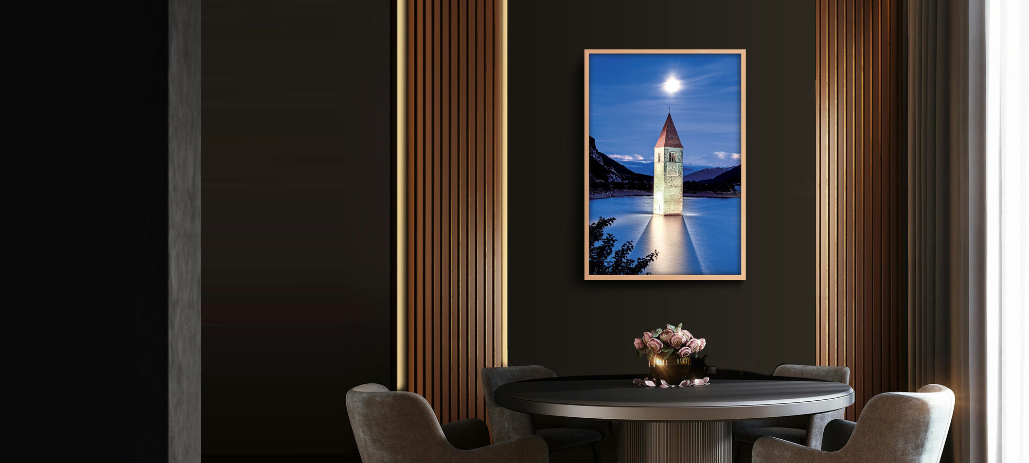Quest'opera è disponibile su carta fotografica Fine Art o su Tela Tiziano Canvas. Gli inchiostri utilizzati sono di altissima qualità e a lunga durata, garantendo una resa cromatica brillante e duratura nel tempo. Le onde bluastre lambiscono le sue mura, riflettendo la quiete e la solitudine di questo luogo misterioso. Le montagne circostanti si stagliano maestose all'orizzonte, creando uno sfondo suggestivo e incantevole.