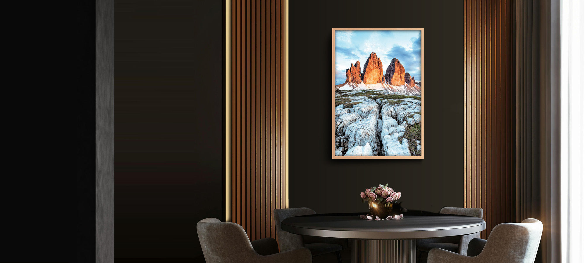 Quest'opera è disponibile su carta fotografica Fine Art o su Tela Tiziano Canvas. Gli inchiostri utilizzati sono di altissima qualità e a lunga durata, garantendo una resa cromatica brillante e duratura nel tempo. In questo paesaggio incontaminato, l'anima trova pace e serenità, mentre lo sguardo si perde tra le vette che si stagliano contro il l'ampio cielo azzurro . È un momento di contemplazione, in cui ci si sente parte di qualcosa di più grande, immersi nella bellezza selvaggia e intatta delle montagne.
